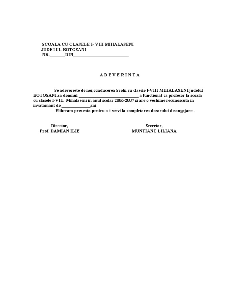 Examenul De Definitivat Din 2020 Model De Fisa De Inscriere Plus Adeverinta De Vechime Si Calificativ