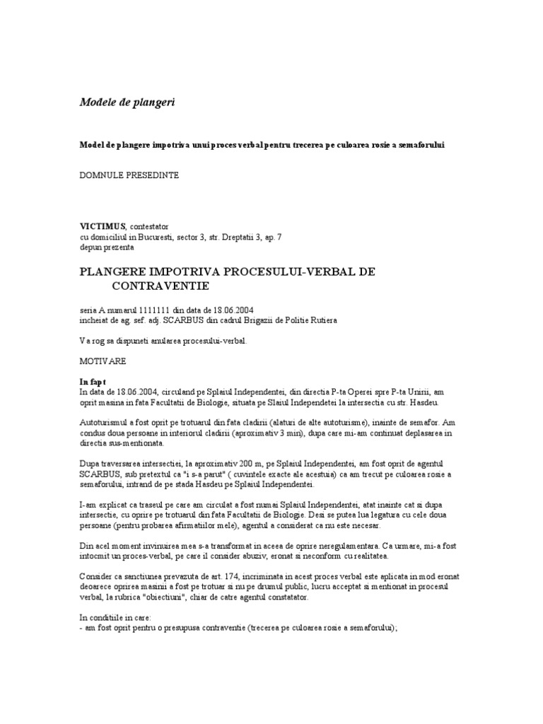 Model De Contestatie Proces Verbal Pentru Amenzi