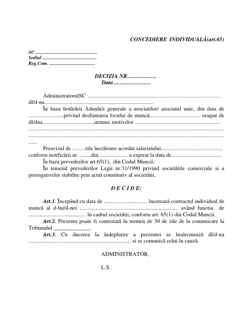 Model Decizie Concediere Individuala