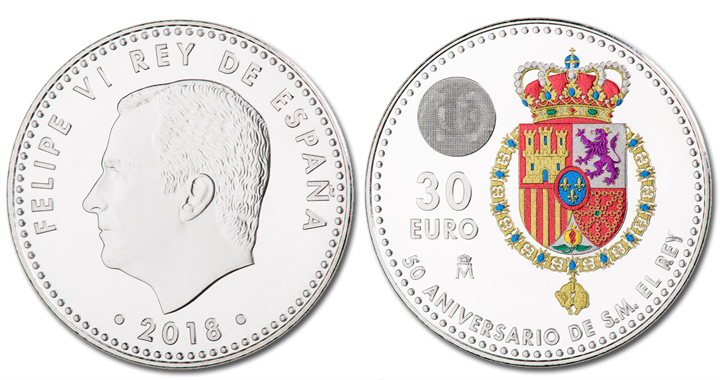 Una Moneda De 30 Euros De Plata Y A Color Por Los 50 Anos Del Rey