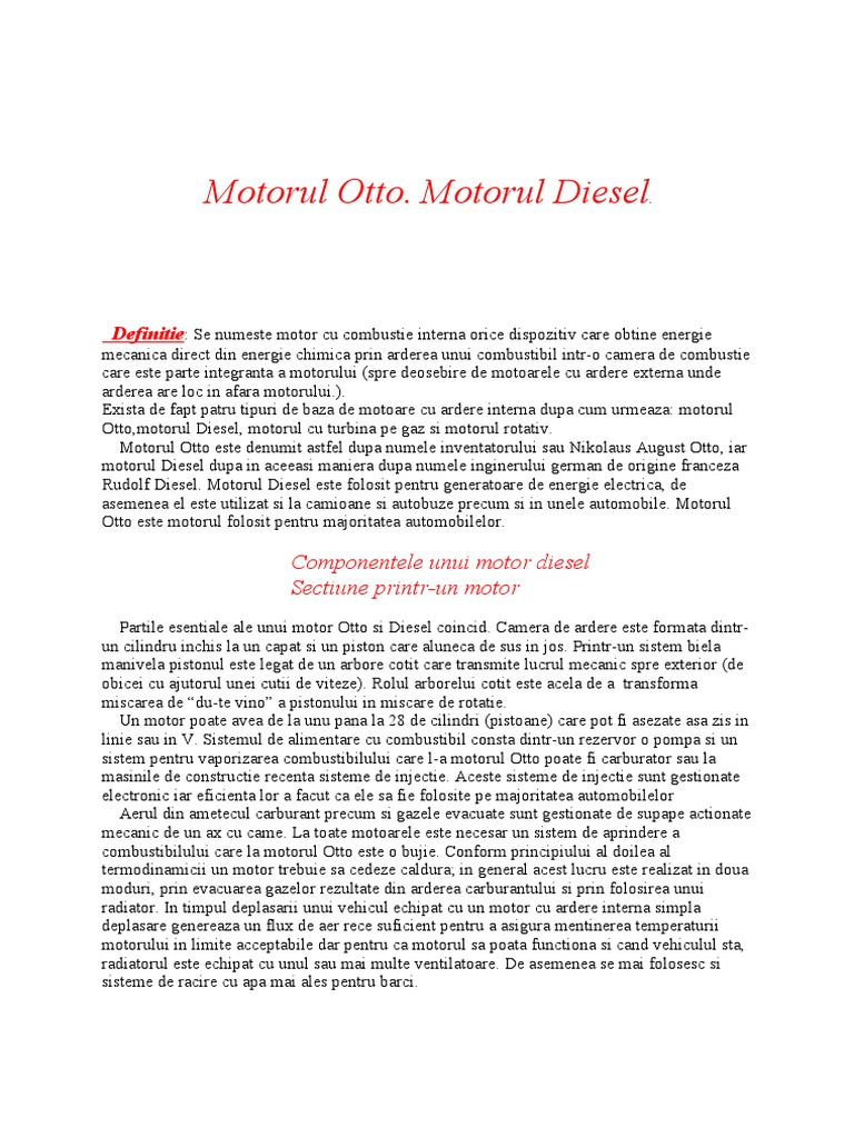 Motorul Otto Motorul Diesel