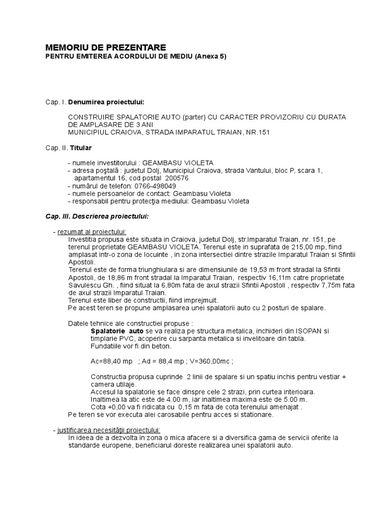 Memoriu Tehnic De Mediu Urban Ambition