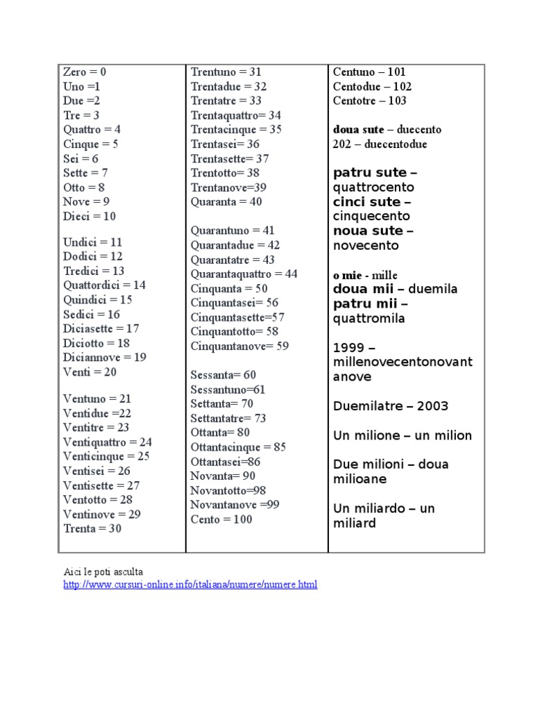 Numere In Italiana
