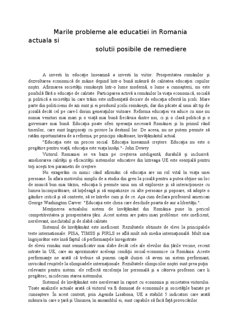 Marile Probleme Ale Educatiei In Romania Actuala Si