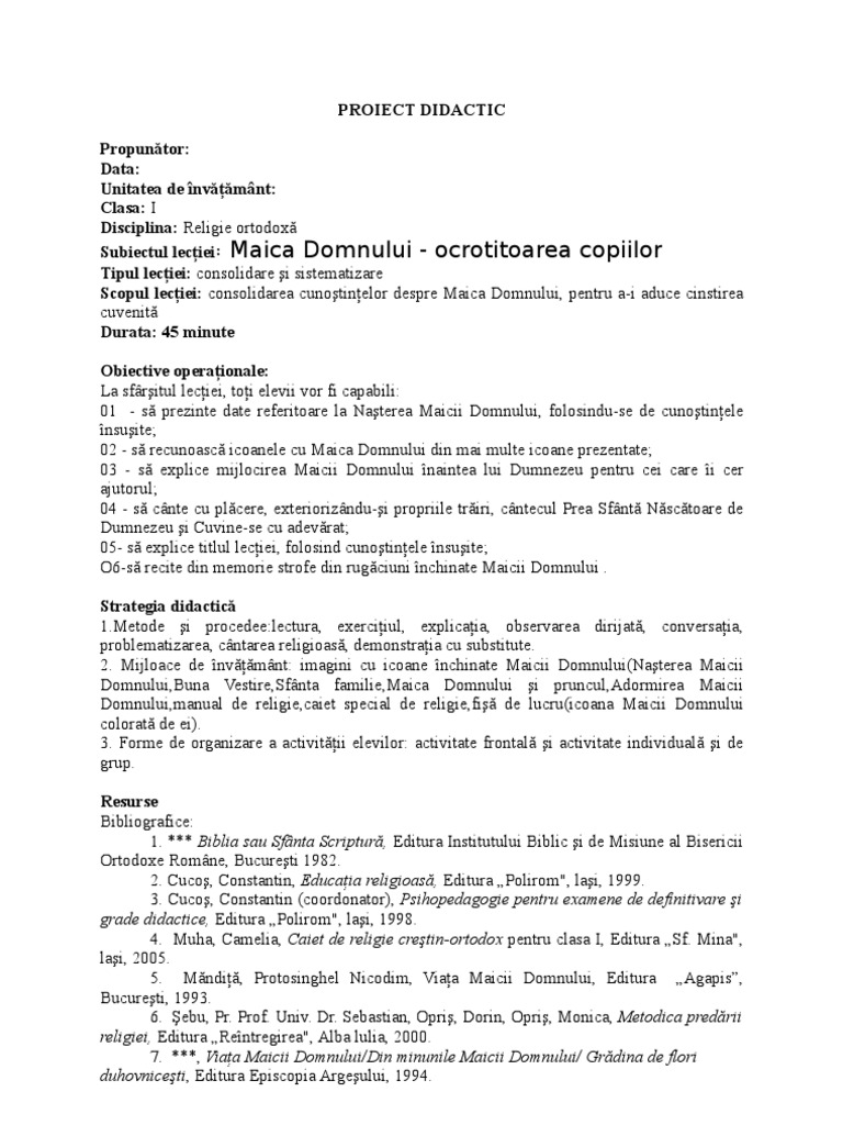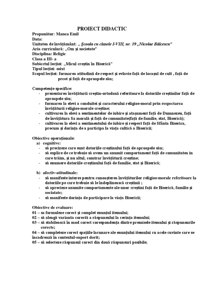 Proiect Didactic Religie Pedagogie Pedagogie Uoradea Studocu