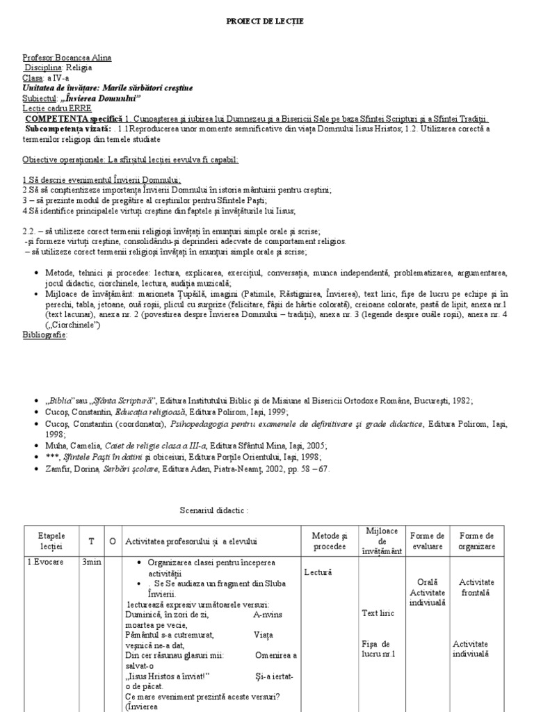 Proiect Didactic Clasa A Patra Invierea Domnului Blog Mirela