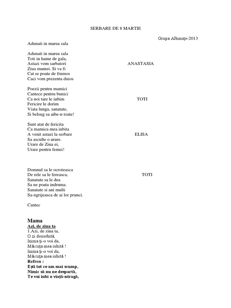 Serbare 8 Martie Grupa Mare Centrul Alba Ca Zapada Este O Marca