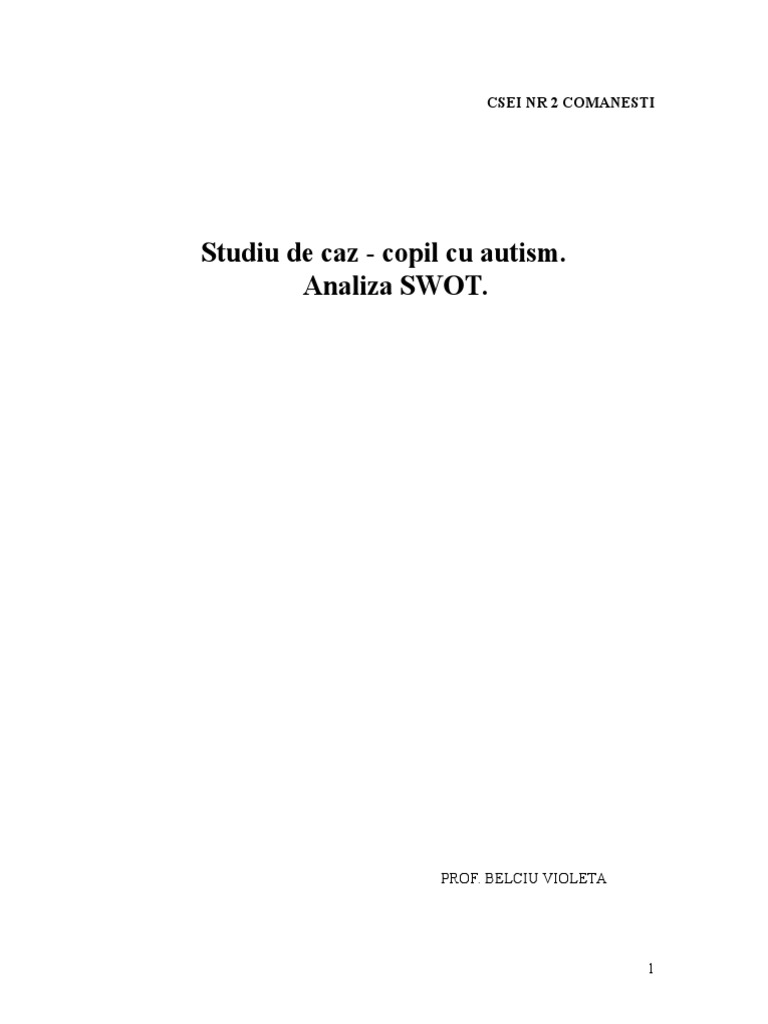 Doc Studiu De Caz Autism Ref Lory Magda Morosanu Academia Edu