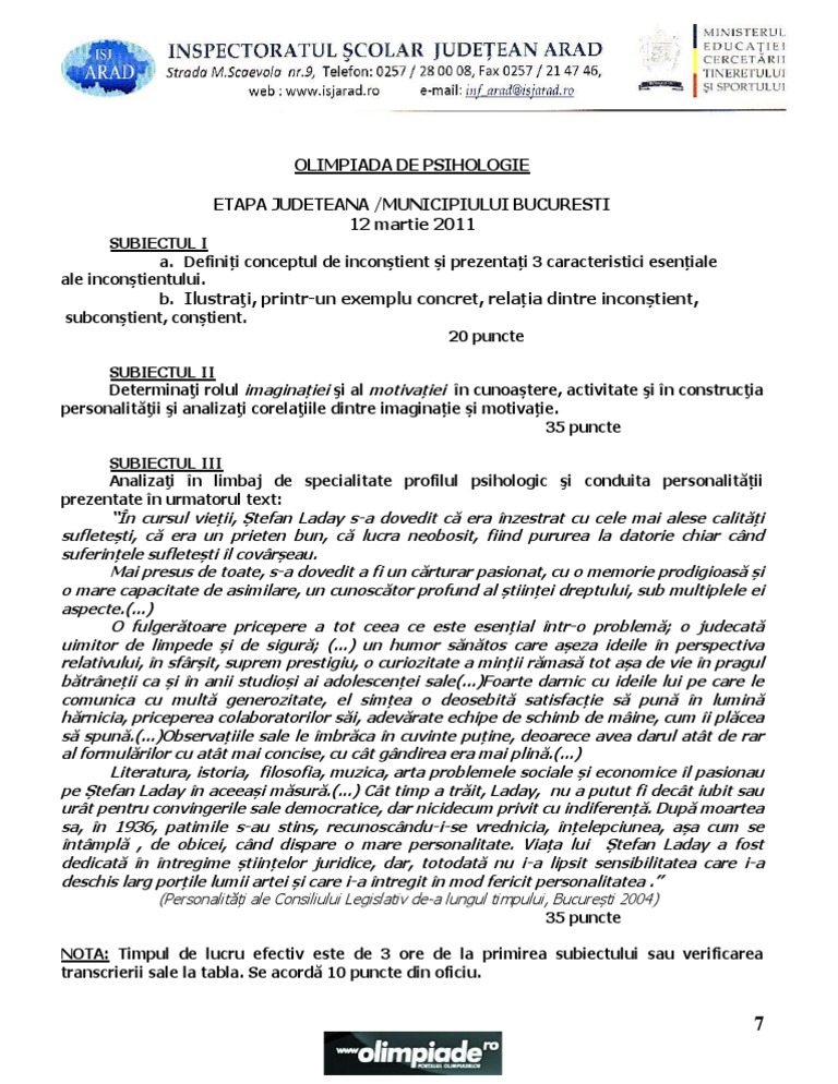 2011 Psihologie Etapa Judeteana Subiecte 0
