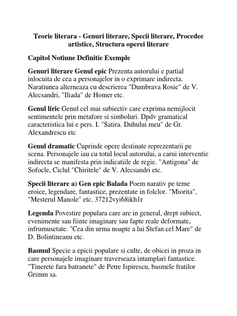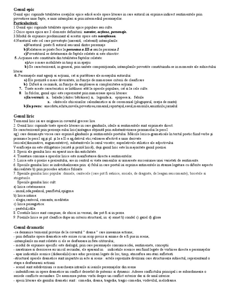 Genurile Si Speciile Literare Pdf Document
